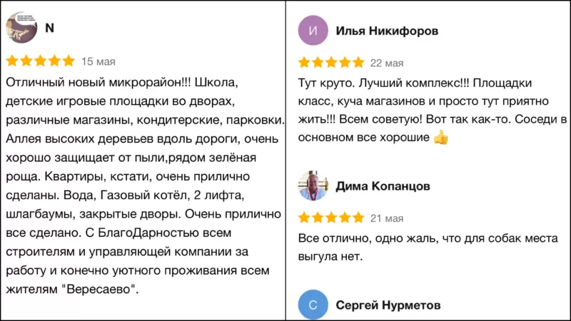 Еще одна немаловажная причина, по которой мы именно этот комплекс включили в наш рейтинг, — высокие оценки жителей и множество положительных отзывов.