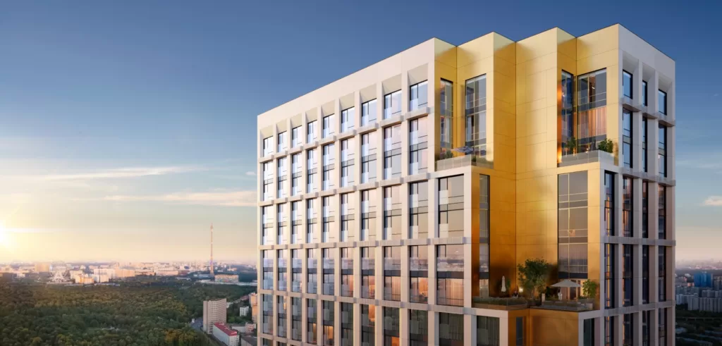 Преимущества: проект бизнес-класса на Проспекте Мира. Насыщенная внутренняя инфраструктура по концепции «город в городе» – все необходимое для работы и отдыха на территории. Интеллектуальная система управления «Умный дом». Lounge-rooftop терраса на крыше с панорамными видами на столицу.