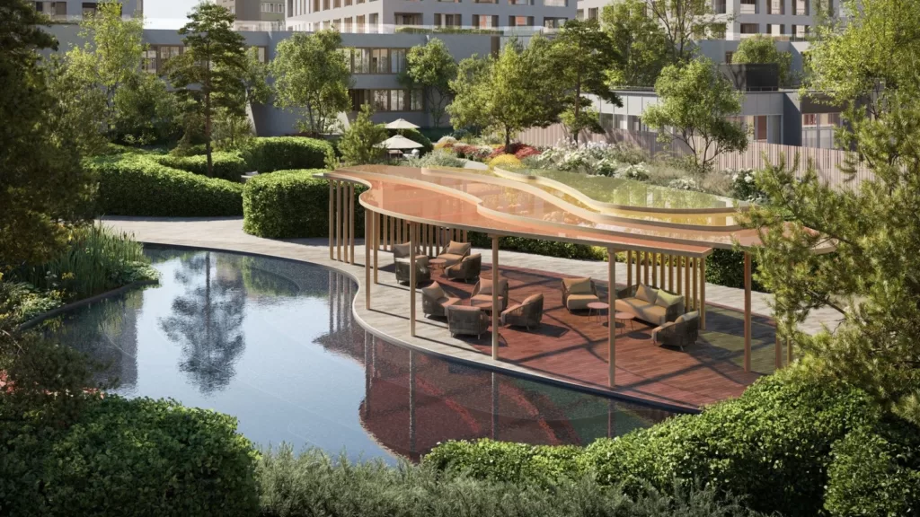 Комплекс предлагает развитую инфраструктуру (2700 м²) для жителей: большая детская игровая площадка (600 м²), многофункциональная спортивная площадка (368 м²), зона воркаута (более 100 м²), пейзажный пруд с террасой, зоны отдыха и прогулочные маршруты.