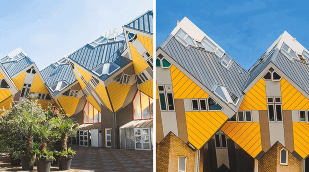 Архитектор Пит Блум стремился создать необычный дом, отказавшись от традиционных представлений о жилых зданиях. В Роттердаме, рядом с вокзалом Блаак, расположен этот примечательный дом, состоящий из кубических модулей и пользующийся популярностью у туристов со всего мира.