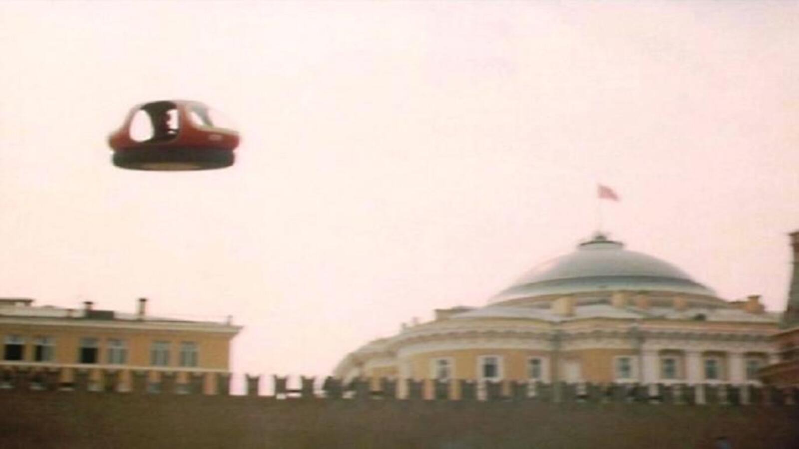Одна из самых запоминающихся сцен — полёт Коли Герасимова над Москвой будущего. В кадре появляются: