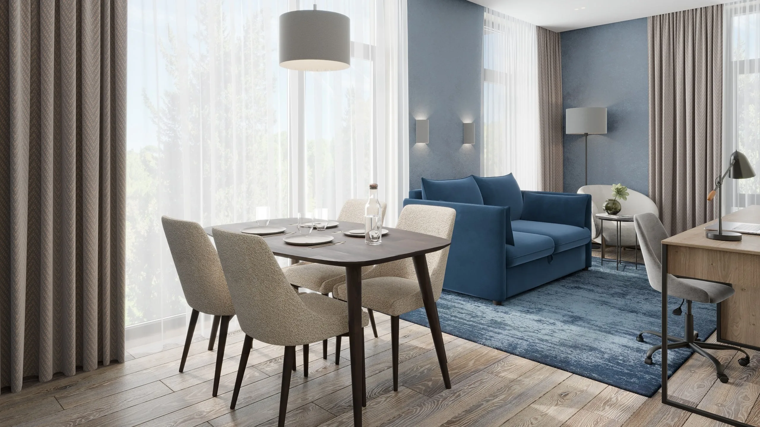 Система запоминает привычки постояльца и подстраивает номер под его предпочтения. Резиденты могут воплотить различные персонализированные сценарии, например, «Доброе утро», «Рабочий момент», «Релакс у моря». При этом циркадное освещение на первых этажах комплекса поможет адаптироваться к часовому поясу и улучшить качество сна. Система умного энергоменеджмента с датчиками движения автоматически экономит ресурсы и создаст идеальный микроклимат в номерах и общих зонах отеля.
