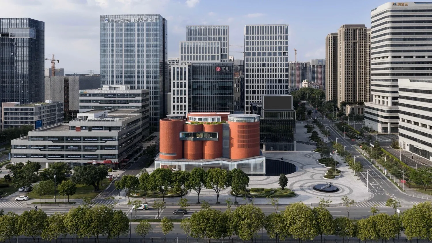 Музей расположился в центре парка «Минке» в Гуанчжоу. Он органично вписан в район с плотной застройкой и сочетает в себе промышленную и культурную логику. Территория поделена на две зоны. В северной части находится компактный офисный городок, окружённый малоэтажными зданиями, которые формируют чёткую городскую границу. Южная часть отведена под музейный квартал под открытым небом. Здесь есть просторная общественная площадь — на ней проводят выставки и мероприятия, а ещё она служит местом для повседневной городской жизни.