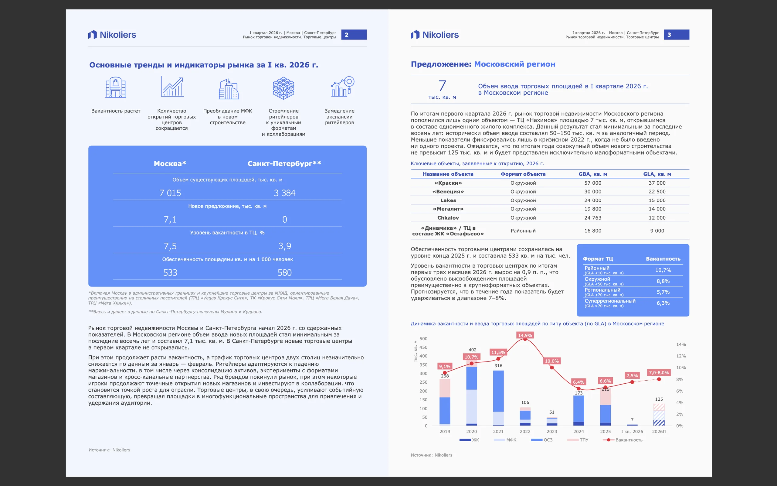 В Московском регионе в I кв. 2026-го ввели всего 7 тыс. кв. м торговой недвижимости — самый низкий показатель за 8 лет, а в Питере не открылся ни один новый ТЦ
