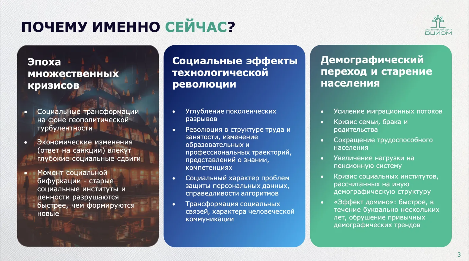 ВЦИОМ выделяет нарождающиеся тренды как сигналы будущих изменений в обществе, которые будут влиять на спрос на жильё, типы домов и инфраструктуру