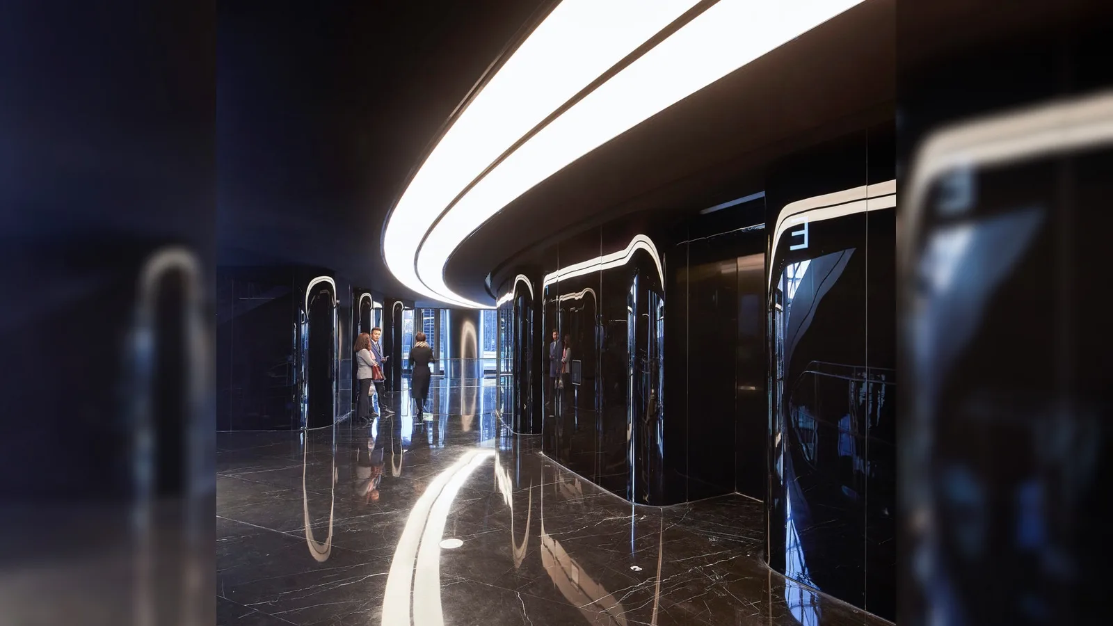 Особое внимание было уделено нижним уровням, где архитектура небоскрёба переходит в городское пространство. Здесь формируются общественные зоны, открытые для пешеходов, что делает здание частью повседневной жизни района, а не изолированным офисным анклавом.