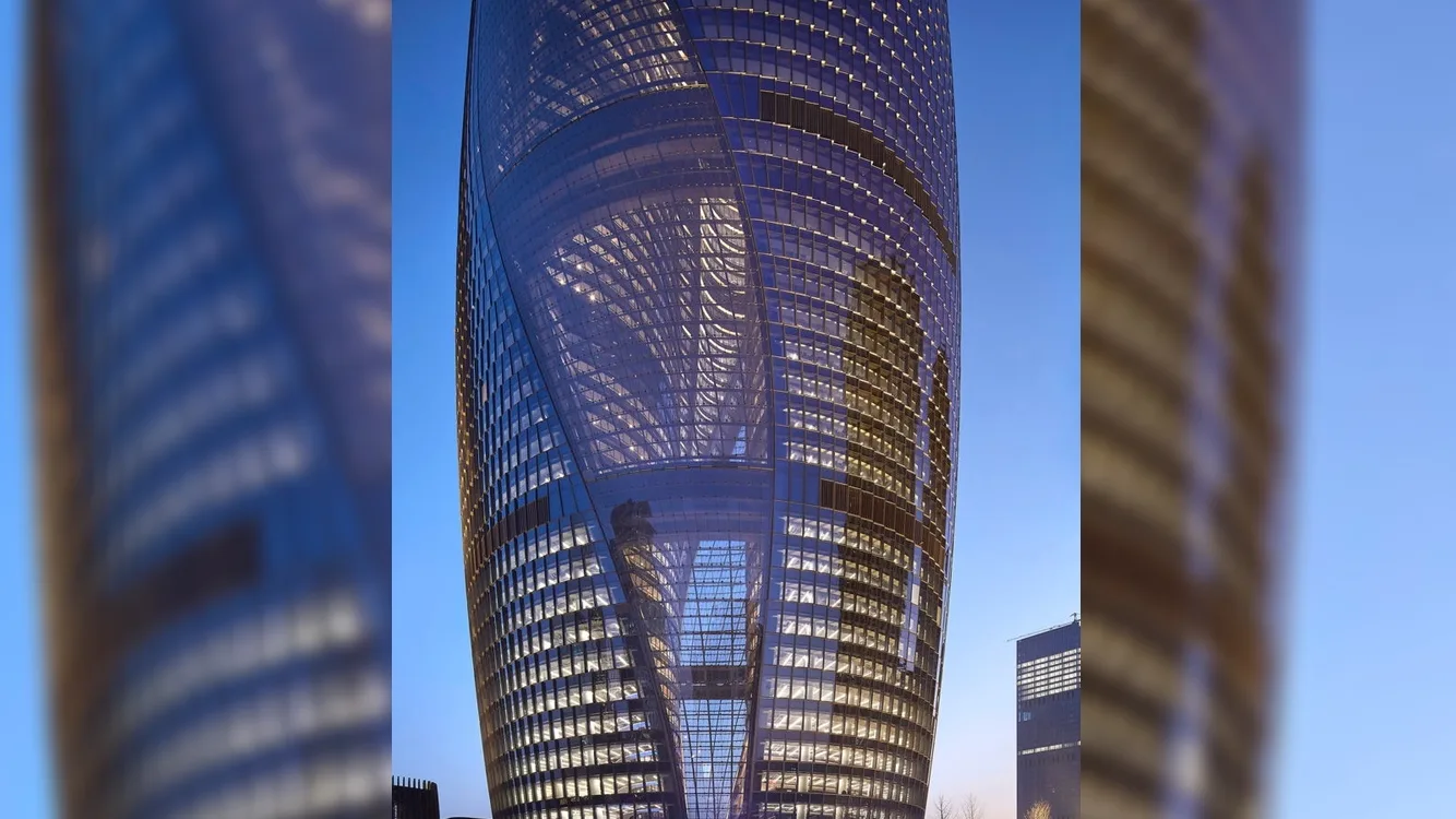 Каждый элемент фасада рассчитан с учётом ориентации по сторонам света, что позволяет минимизировать перегрев и сократить энергопотребление. В результате здание выглядит цельным и пластичным, словно вылепленным из одного материала, несмотря на свою сложную геометрию.