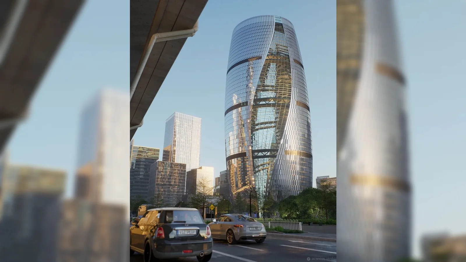 Ключевая идея проекта заключается в том, что небоскрёб фактически «раздваивается» у основания, обходя зону подземного тоннеля.