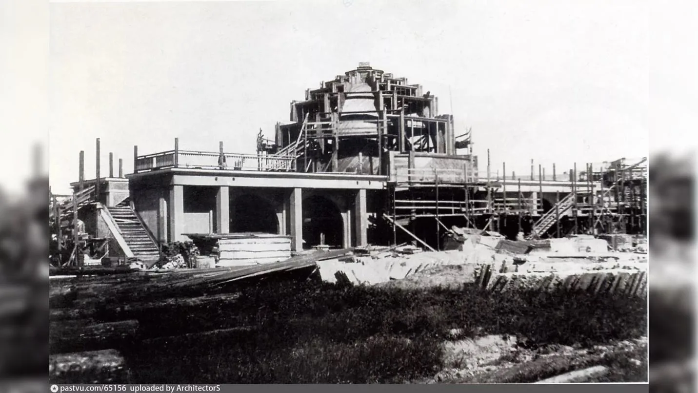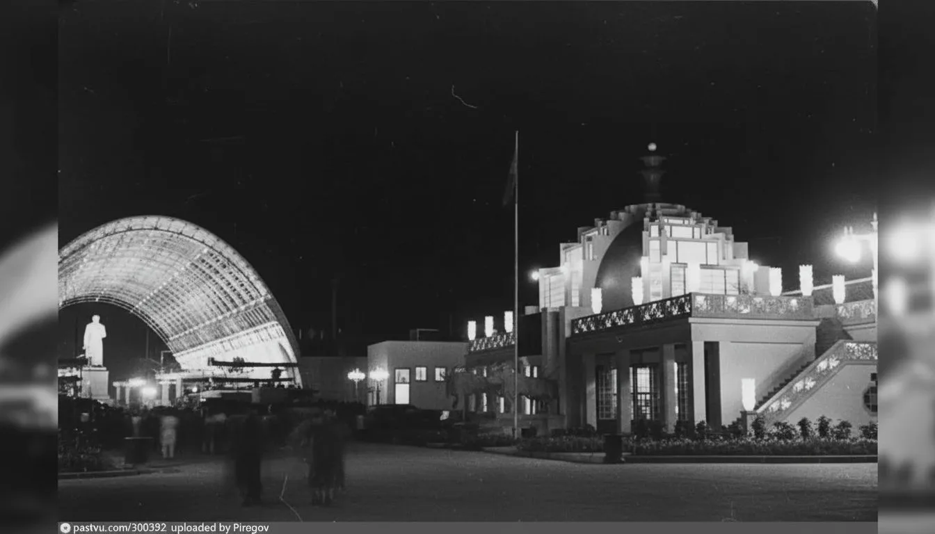 Тогда павильон представлял собой деревянное сооружение, но с амбициями монументальной архитектуры. Чтобы добиться впечатления капитального здания, фасады покрывали штукатуркой, имитирующей мрамор. Это было характерно для довоенной выставочной эстетики, где важна была не только функция, но и идеологическая выразительность.