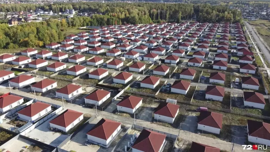 Вблизи Тюмени расположен коттеджный поселок, внешний вид которого вызывает удивление и недоверие у многих. Его однородная застройка создает необычный визуальный эффект. Строительство поселка началось несколько лет назад и быстро привлекло внимание потенциальных покупателей из разных регионов, включая работников нефтегазового сектора из ЯНАО и ХМАО. Основной причиной высокого спроса стала необычно низкая для Тюменской области стоимость коттеджей: дома с чистовой отделкой площадью около 80 кв. м продавали за 3 миллиона рублей. Несмотря на популярность, поселок сталкивается с проблемами инфраструктуры: грунтовые дороги, отсутствие развитой социальной инфраструктуры (детские площадки, магазины) и неудобное транспортное обслуживание. В 2024 году поселок приобрел негативную известность из-за нарушений строительных норм и правил (СНиП), в результате чего около 1000 домов оказались без возможности подключения к электросетям. В итоге проблему с электроснабжением решили, однако многие другие вопросы остаются нерешенными. На сегодняшний день стоимость коттеджей без отделки составляет около 3,7 миллиона рублей на вторичном рынке.